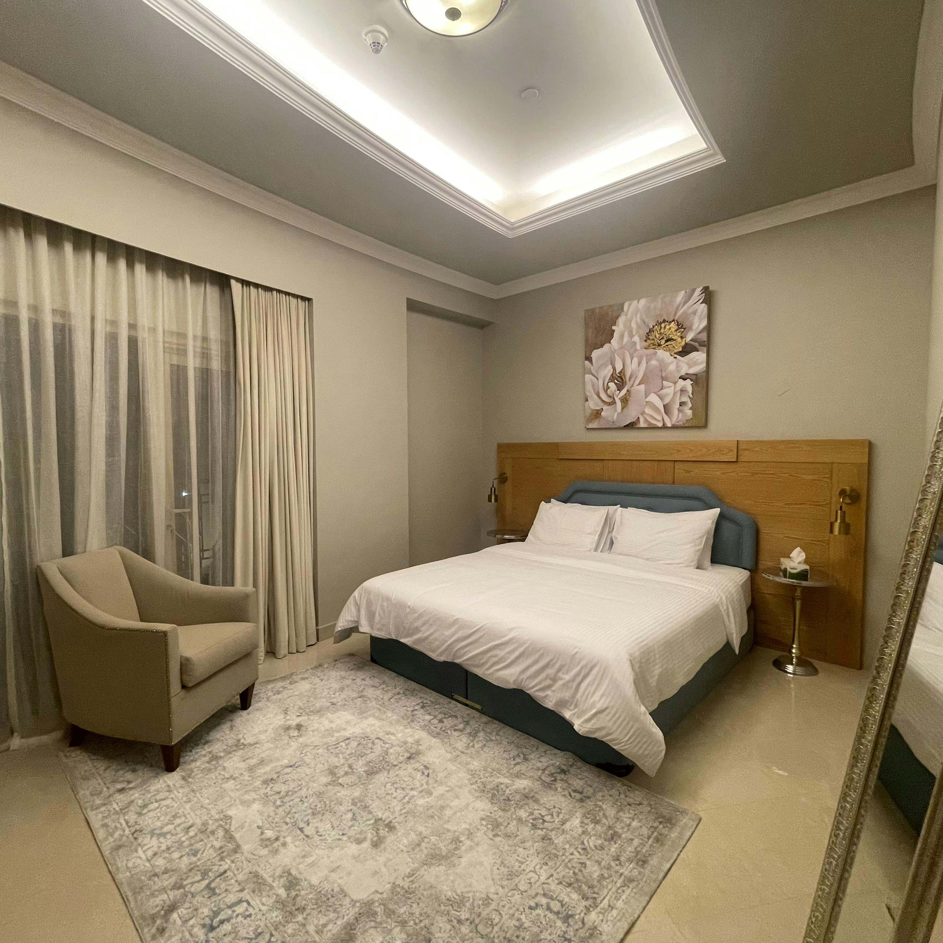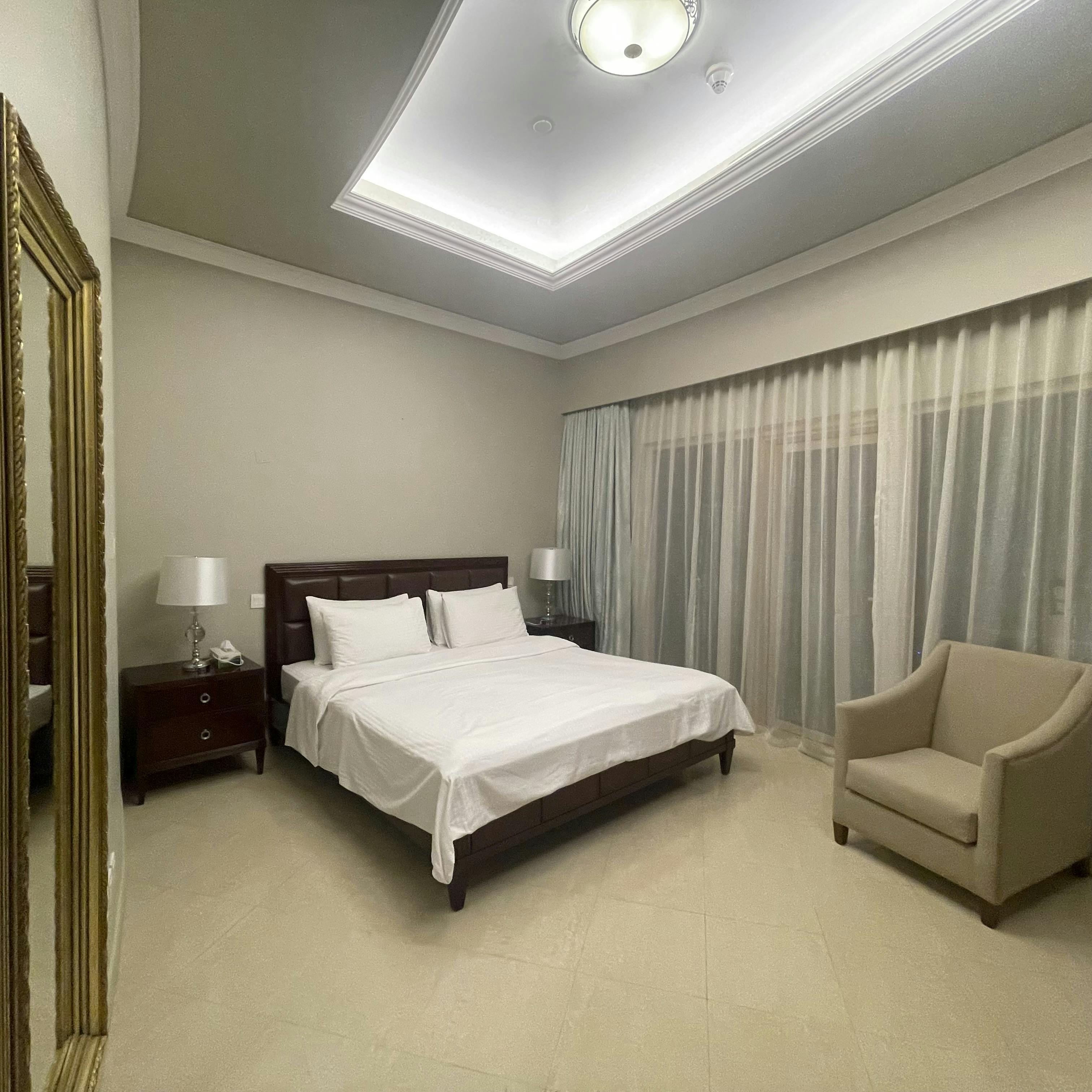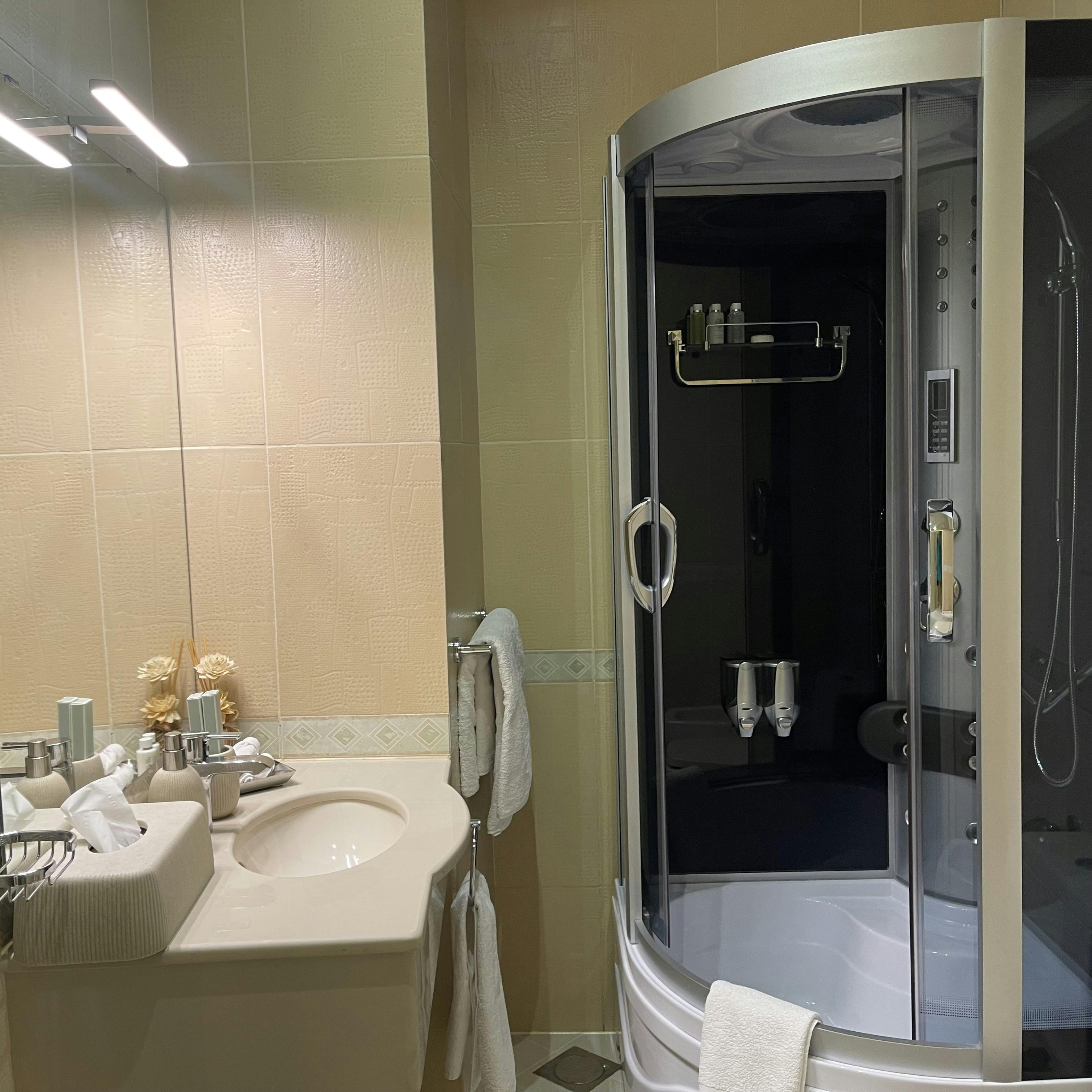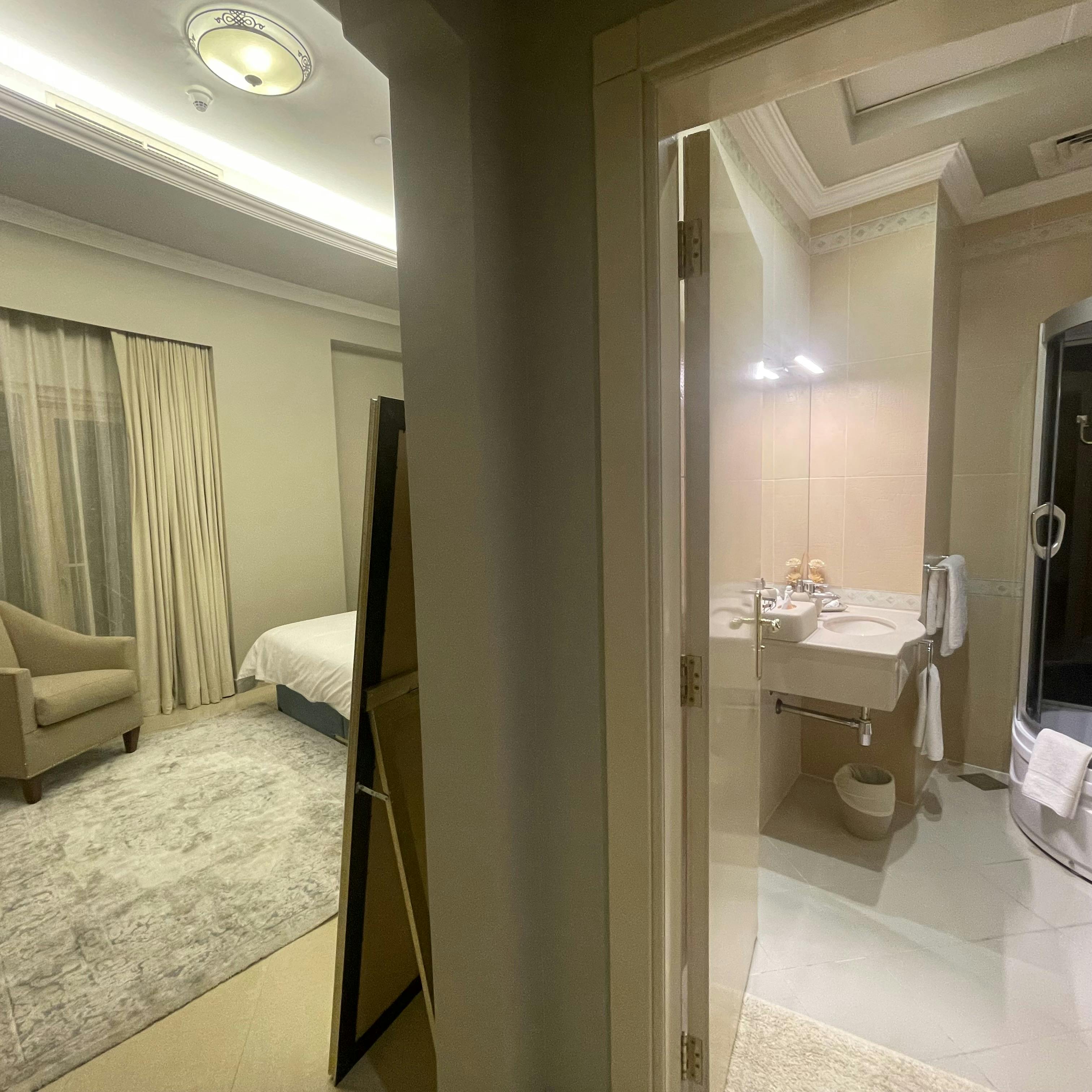 Maid room with sofa bed 140cm unfolded and separate ensuite bathroom.