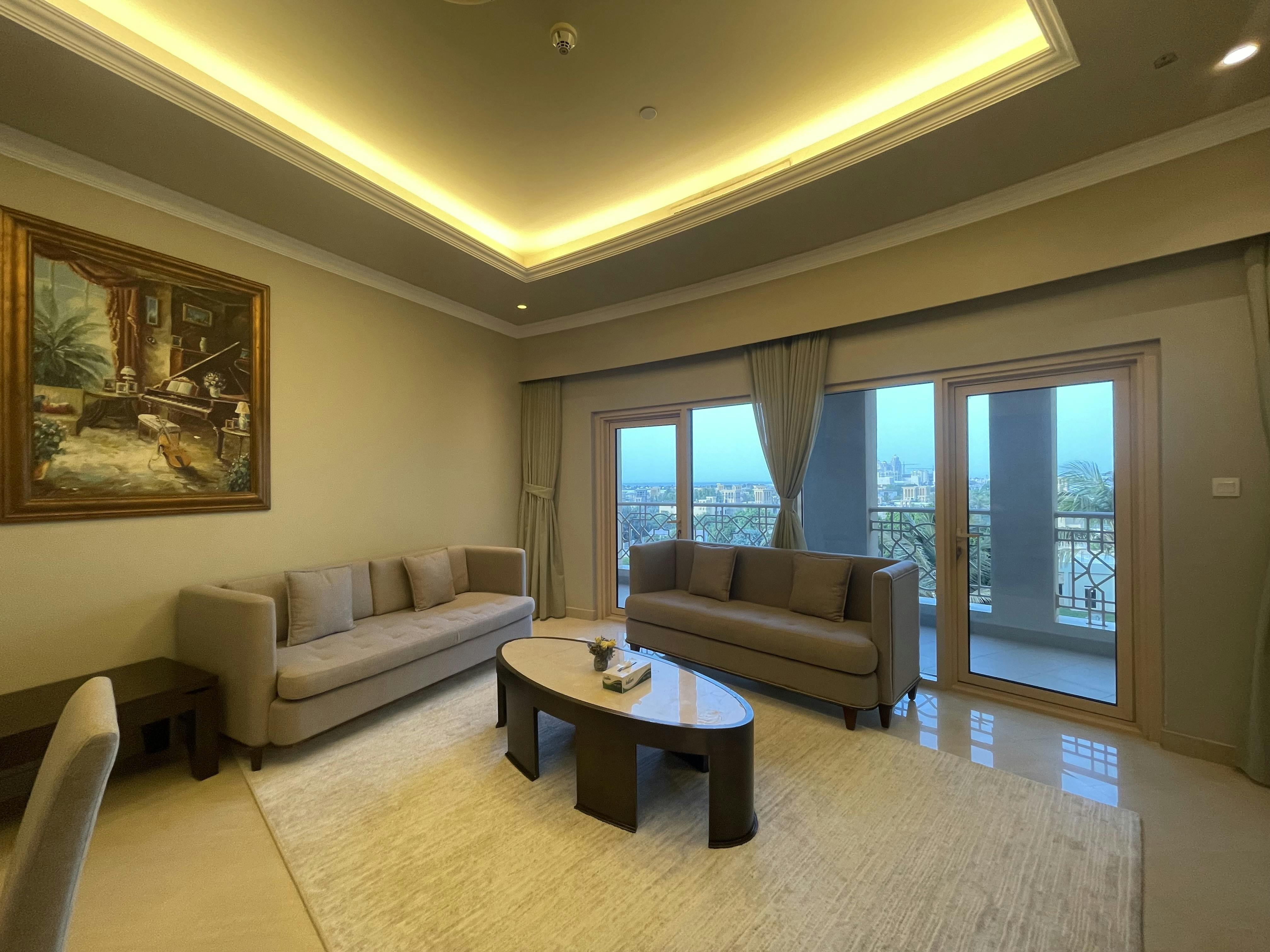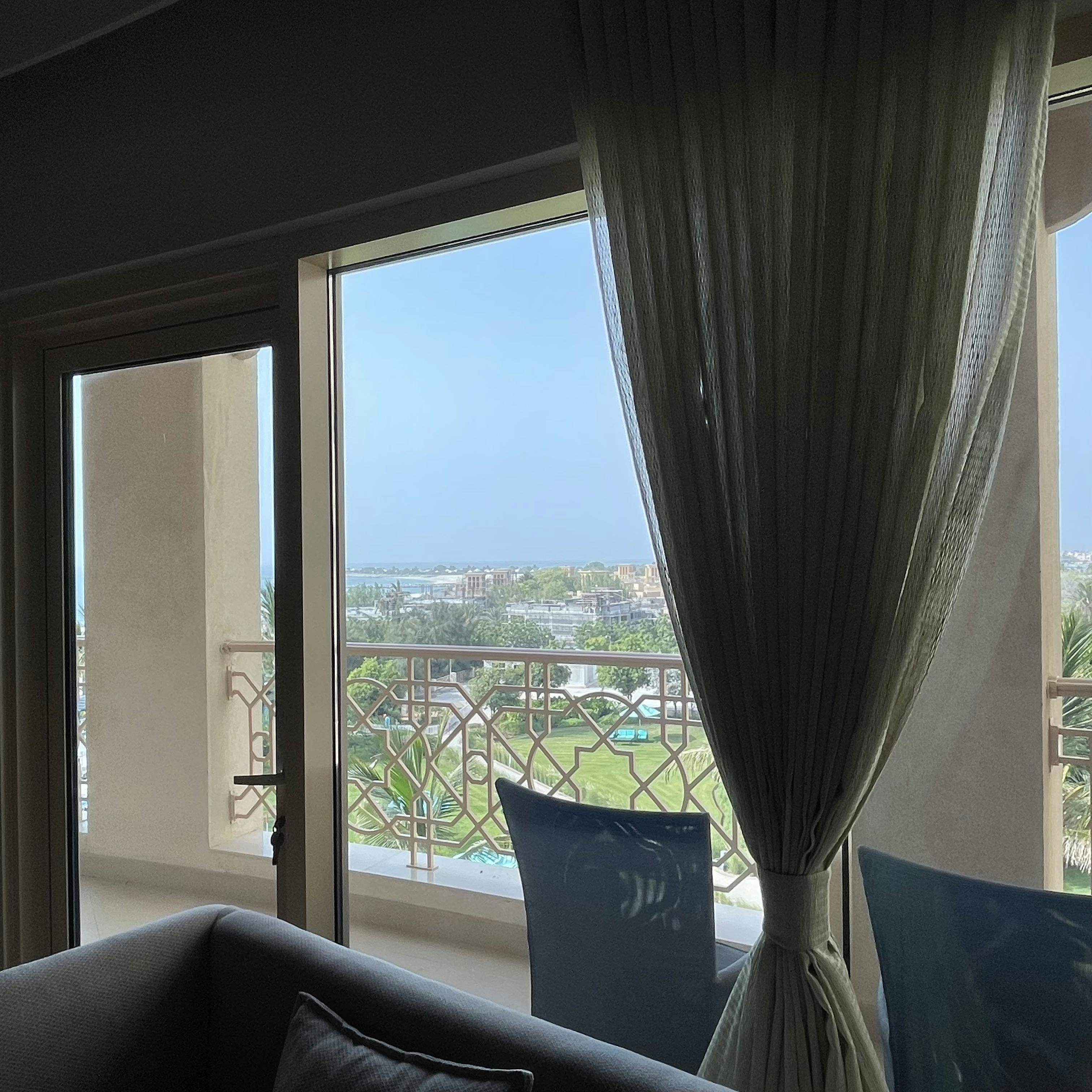 This apartment is overlooking the beach, pools and the garden of the property with endless balcony, stretching in front of all the rooms.